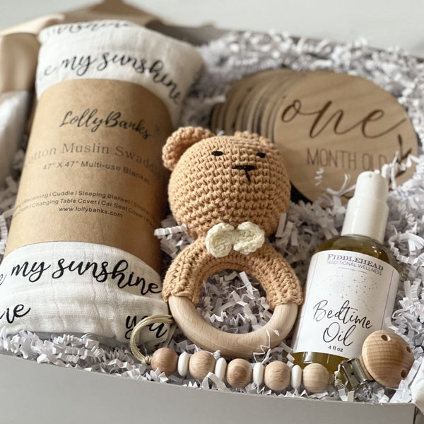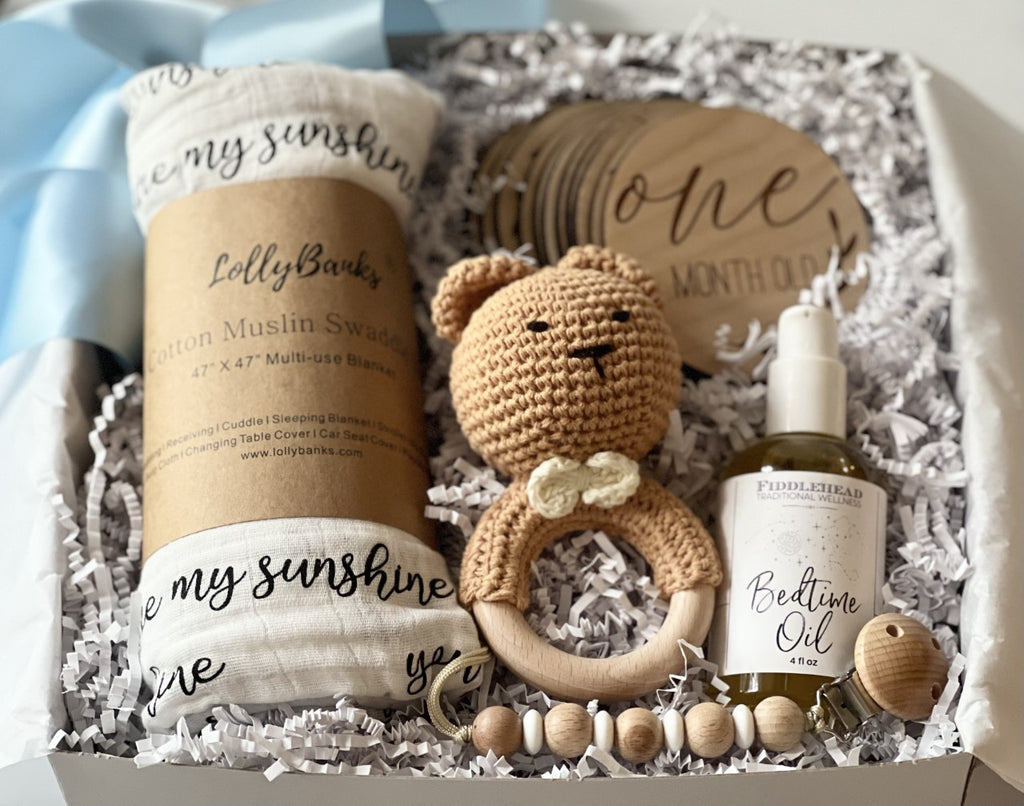 Send a welcome and well wishes with our Bebé Box, featuring a darling collection of locally sourced treasures and keepsakes for the new little one. Choose pink, blue or neutral ribbon. The Bebé Box includes: